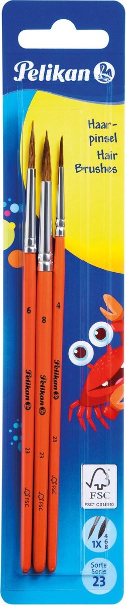 Pelikan 70038. Producttype: Penseelset, Vorm penseel: Gesorteerd, Maat penseel: Gesorteerd. Aantal inbegrepen producten: 3 stuk(s). Type verpakking: Blister