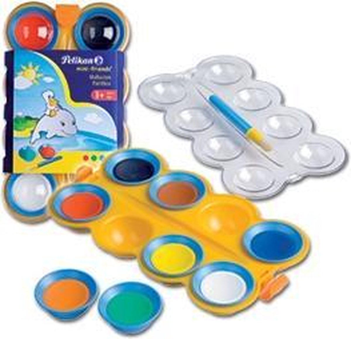 8 Waterverfkleuren met extra grote verfvoorraad en een mengpalet. De verf kan uit de meeste textiel soorten gewassen worden.