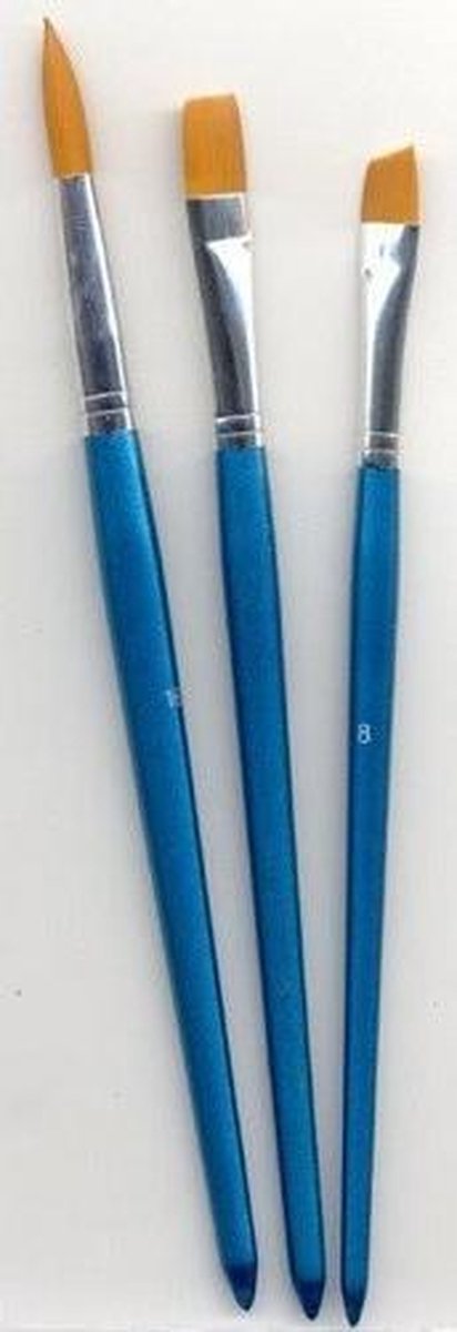 Penselen set nylon 2x plat en 1x rond 3 Stuks