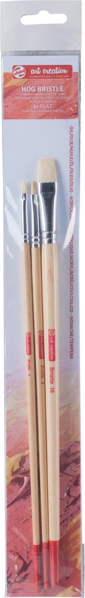 * Talens Art Creation penselenset varkenshaar * Uit varkenshaar * Voor olieverf, acrylverf en plakkaatverf. * set van 3 stuks: 3 x rond nr 2, 6 en 10