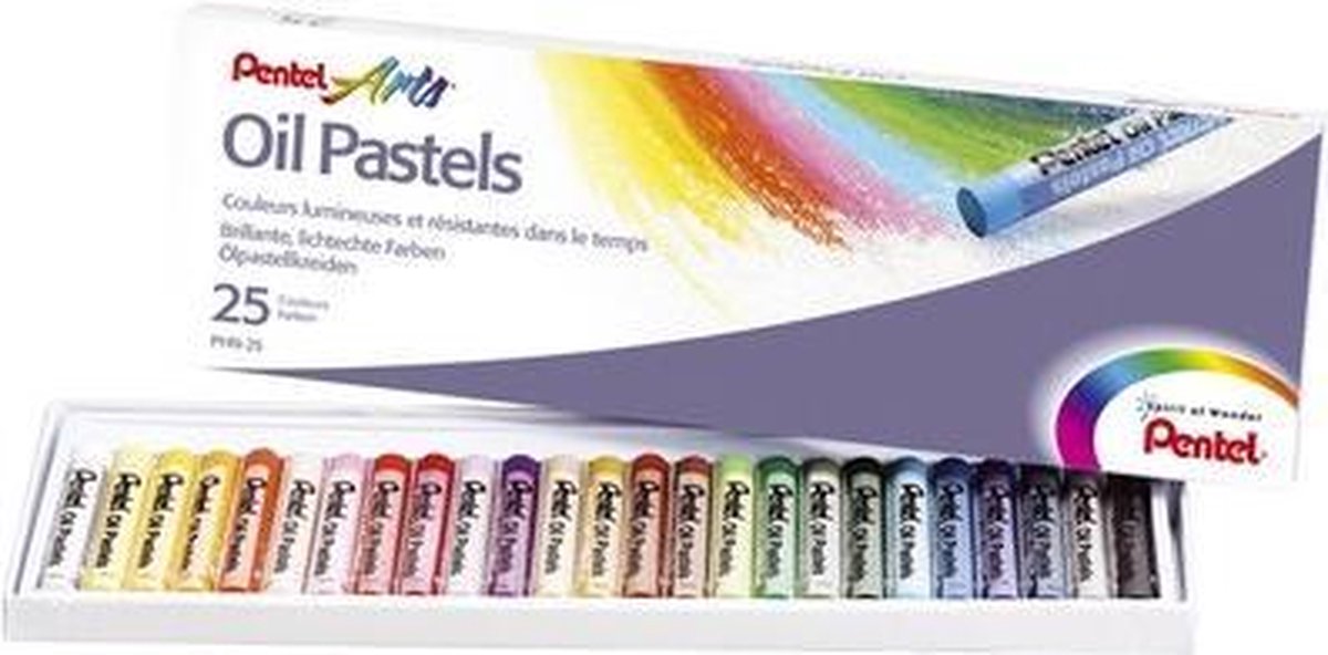 PentelArts Oliepastels PHN4, 25er plastic behuizing gemakkelijk en soepel toe te passen, schitterende ondoorzichtige kleuren, verschillende soorten inhoud: 25 stuks Oliepastels PHN4, 25er Set • Eenvoudig aan te brengen • handige krijtjes • heldere briljante kleuren met een hoge dekking en delicate kleuren en tinten mengbaar • naargelang kleuren: citroengeel, chroom geel, okergeel, geel-oranje, licht oranje, oranje, licht bruin, bruin , vandyke-bruin, vermiljoen, rood, roze, paars, lichtblauw, kobaltblauw, Pruisisch blauw, ultramarijn blauw, diep groen, groen, groen, grijs roze, zwart, grijs, wit • in doos met plastic inzetstuk • Waarschuwing - Niet geschikt voor kinderen jonger dan 3 jaar geschikt - kleine onderdelen! Promo Pack : 25er Set oliepastels + FREE tekenpapier blok, 200 g / m², 145 x 260 mm, 10 vellen toepassingsvoorbeelden: - ideaal voor verschillende ondergronden: papier, hout, canvas, klei, karton - interessante effecten in combinatie met water, olieverf,