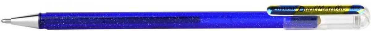 Uniek: Een glitter gel pen met twee kleuren!??De speciale inkt in de Hybrid Dual Metallic pennen verandert van licht naar donker bij een verandering van de lichtinval. De inkt geeft een 'shimmering' glans en glitter effect. Innovatieve gelroller die 2 verschillende kleuren laat zien afhankelijk van de lichtval en de kijkhoek. De kleuren veranderen op licht/donker papier. Ideaal voor het markeren en ontwerpen op donker papier. Het glanzende glitter effect blijft zichtbaar op donker papier. Lijndikte 0,5 mm. De kleurencombinatie is blauw/goud.