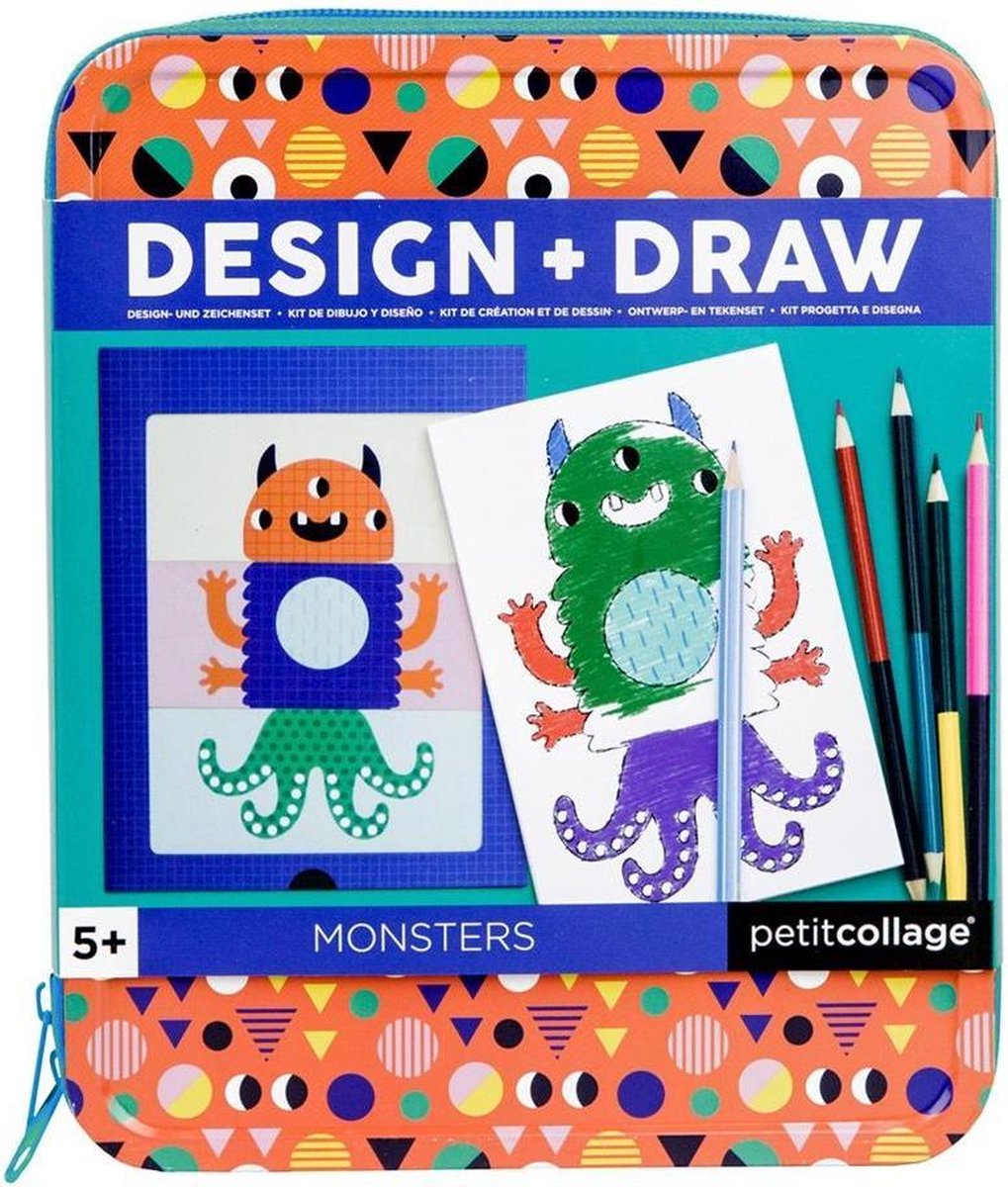 Petit Collage ontwerp en tekenset monsters Mix en combineer om je favoriete monster te creëren en gebruik het tekenblok om je ontwerpen tot leven te brengen! Specificaties: Kleur: multicolor Materiaal: aluminium, karton Geslacht: junior Afmetingen verpakking: 21,5 x 18 x 3 cm (L x B x H) Leeftijd: vanaf 4 jaar Inhoud: 1 Blikken etui 24 Combinatiestukken 1 Magnetisch frame 1 Tekenblok 1 HB-potlood 4 Dubbelzijdige kleurpotloden