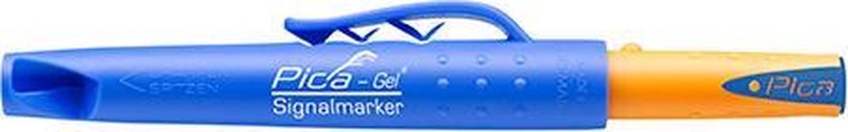 Permanent gel marker. Blauw. Variabele lijndikte ongeveer 2 tot 8 mm. Schrijft op stoffige, ruwe, vette, vochtige en donkere oppervlakken. Geschikt voor industrieel gebruik van -20 tot 70 graden Celsius. Scherp contrast op zowel lichte als donkere ondergronden. Stevige dop met clip (puntenslijper geïntegreerd in de dop). Sneldrogende permanente markering.