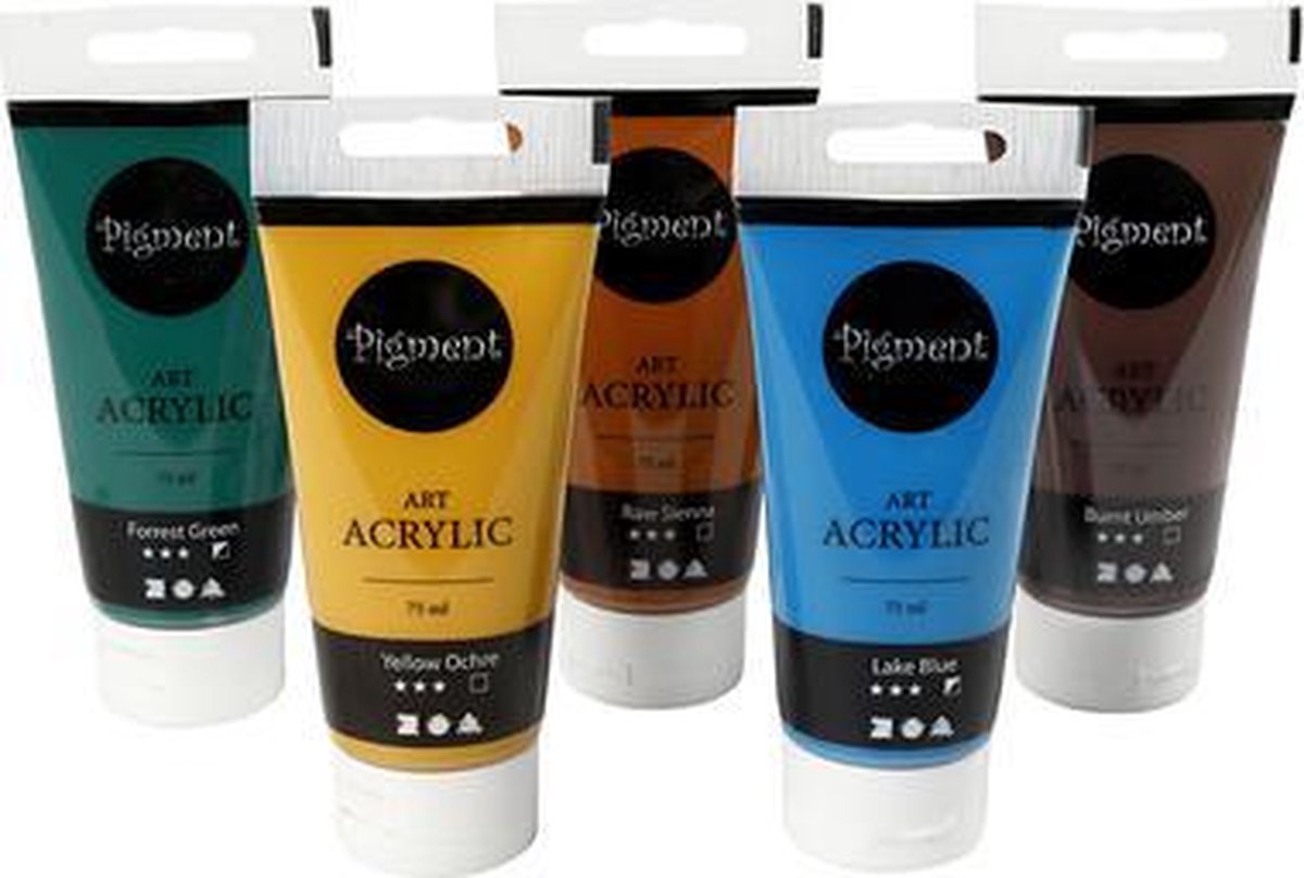 Verf van goede kwaliteit met een hoge pigmentbelasting en een goede kleurechtheid. Deze acrylverf droogt watervast op. Fijne instapkwaliteiit voor kunstenaars in de dop. Dit zijn de warme natuurtinten