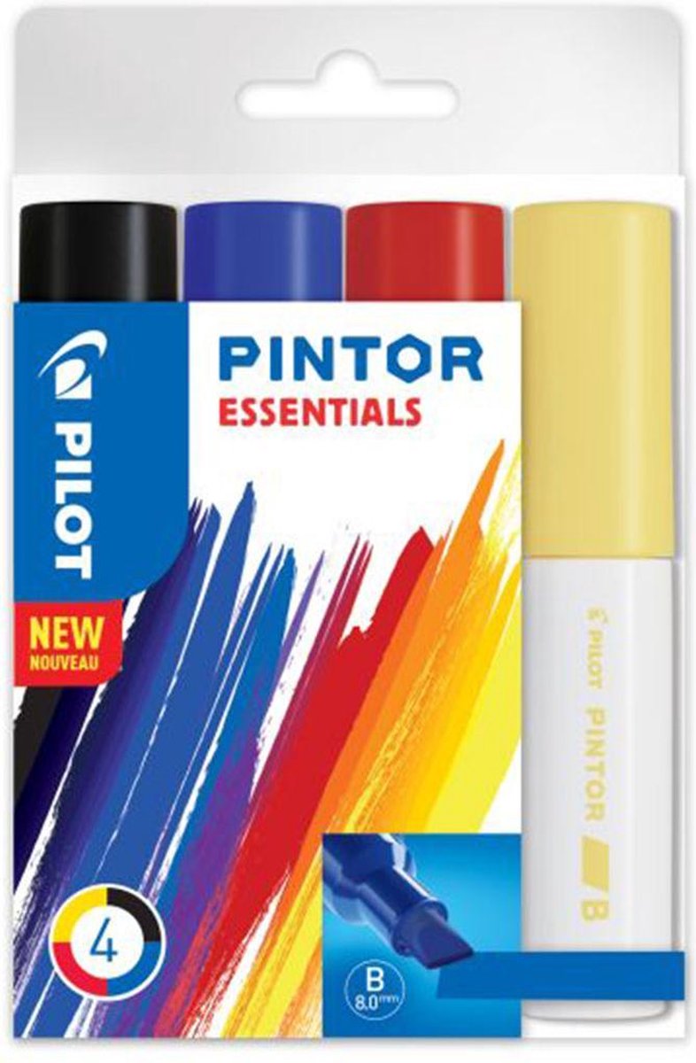 Pilot Pintor. Aantal per verpakking: 4 stuk(s), Schrijfkleuren: Zwart, Blauw, Rood, Geel, Soort tip: Borstelpunt