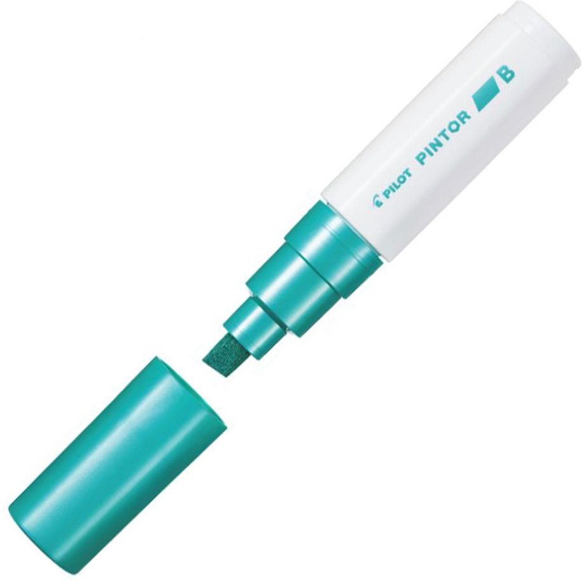 Pilot Pintor Metallic Groene Verfstift - Brede marker met 8,0mm beitelpunt - Inkt op waterbasis - Dekt op elk oppervlak, zelfs de donkerste - Teken, kleur, versier, markeer, schrijf, kalligrafeer…