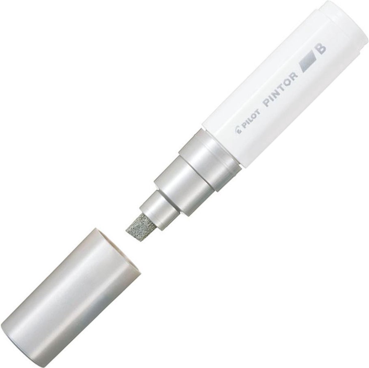Pilot Pintor Zilveren Verfstift - Brede marker met 8,0mm beitelpunt - Inkt op waterbasis - Dekt op elk oppervlak, zelfs de donkerste - Teken, kleur, versier, markeer, schrijf, kalligrafeer…
