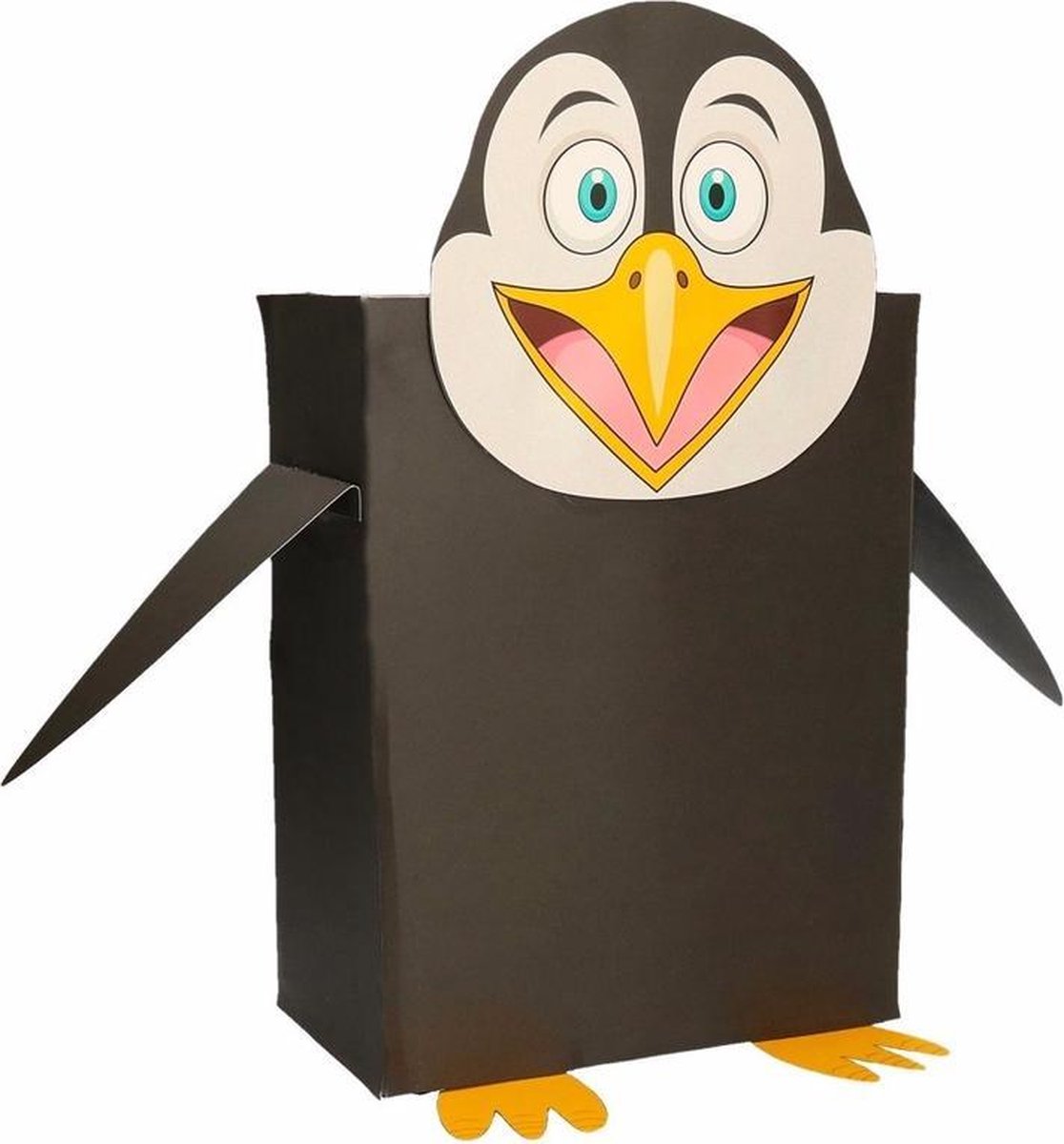 Pinguin zelf maken knutselpakket / Sinterklaas surprise. Compleet basis bouwpakket om een pinguin te kunnen maken zoals op de afbeelding. Dit pakket bestaat uit de basismaterialen en instructies die u nodig heeft om een pinguin te knutselen van ongeveer 41 x 16 x 35 cm. Daarna kunt u de surpise naar eigen wens versieren en personaliseren. Extra nodig: - Lijm - Schaar - Plakband / tape Ruimte voor kado: In het doosje is een ruimte van ongeveer 35 x 24 x 12 cm. Bestaande uit: 1x Doosje 2 bruin zonder opdruk, 1x Instructievel dieren knutselpakket , 6x Basis artikel dierenmasker pinguin
