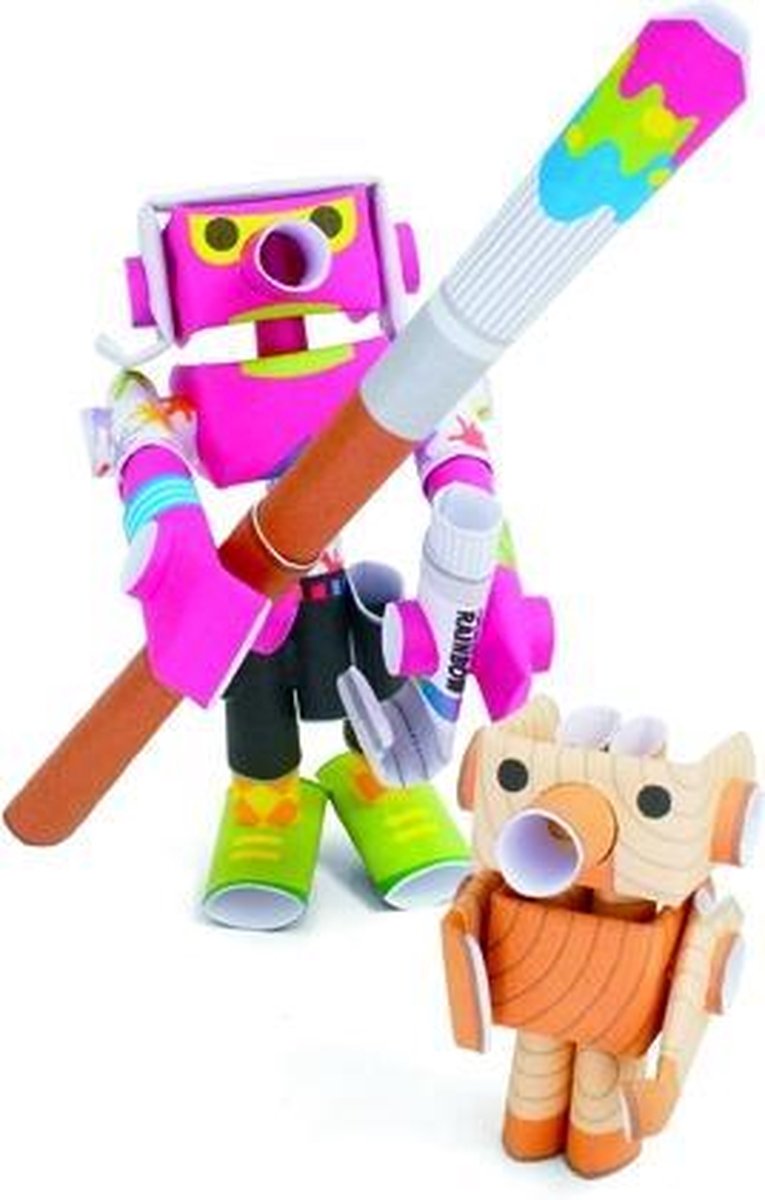 PIPEROID is een papieren zelfbouw robot ontworpen en geproduceerd in Japan. De robot wordt gemaakt van rolletjes papier met voorgeboorde gaten: Lijm of plakband is overbodig. Alles wat je nodig hebt is een schaar en wat geduld, waarmee je je eigen PIPEROID tot leven kunt wekken ! Er zijn vele verschillende PIPEROID modellen, elk met hun eigen verhaal. En regelmatig komen er nieuwe modellen bij! Veel onderdelen van PIPEROID kunnen bewegen of zelfs verwisseld worden met andere PIPEROID 's delen. Gebruik uw verbeelding en maak uw eigen originele PIPEROID ! In Japan worden PIPEROID ’s vooral gebruikt als decoratie, bijvoorbeeld voor op het bureau, maar het is natuurlijk ook een heel leuk en origineel cadeau om te geven. PIPEROID is ontworpen om door volwassenen in elkaar gezet te worden. Echter, met wat hulp is het ook door kinderen vanaf 9 jaar prima te doen! Het in elkaar zetten duurt ongeveer 30 minuten. In elk zakje zitten naast een duidelijke handleiding de twee karakters zoals