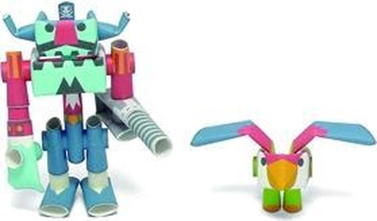 PIPEROID is een papieren zelfbouw robot ontworpen en geproduceerd in Japan. De robot wordt gemaakt van rolletjes papier met voorgeboorde gaten: Lijm of plakband is overbodig. Alles wat je nodig hebt is een schaar en wat geduld, waarmee je je eigen PIPEROID tot leven kunt wekken ! Er zijn vele verschillende PIPEROID modellen, elk met hun eigen verhaal. En regelmatig komen er nieuwe modellen bij! Veel onderdelen van PIPEROID kunnen bewegen of zelfs verwisseld worden met andere PIPEROID 's delen . Gebruik uw verbeelding en maak uw eigen originele PIPEROID ! In Japan worden PIPEROID ’s vooral gebruikt als decoratie, bijvoorbeeld op het bureau. Maar het is natuurlijk ook een heel leuk en origineel cadeau om te geven. PIPEROID is ontworpen om door volwassenen in elkaar gezet te worden. Echter, met wat hulp is het ook door kinderen vanaf 9 jaar prima te doen! Het in elkaar zetten duurt ongeveer 30 minuten. In elk zakje zitten naast een duidelijke handleiding de twee karakters zoals