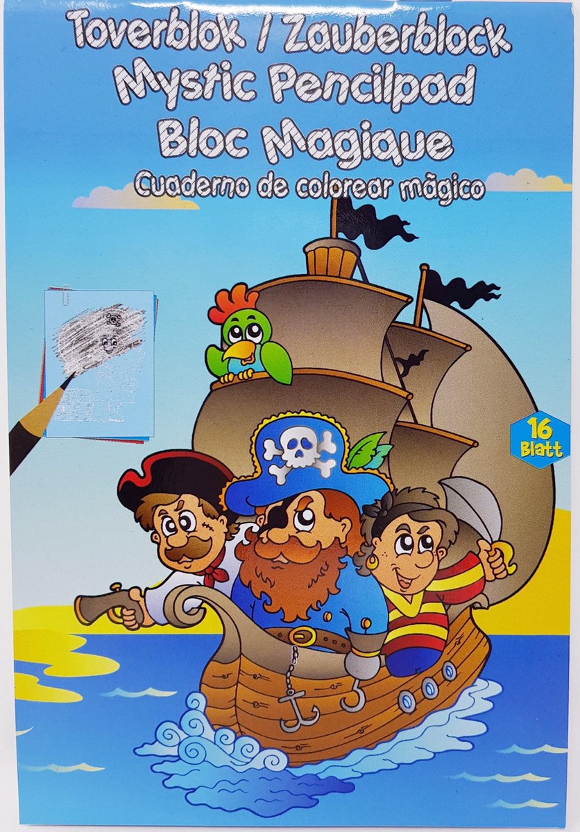 Voor alle stoere jongens hebben wij dit mooie toverblokje met platen waar je overheen kunt krassen met potlood en dan komen er de spannendste tekeningen tevoorschijn met piraten en schepen! 16 bladzijden.