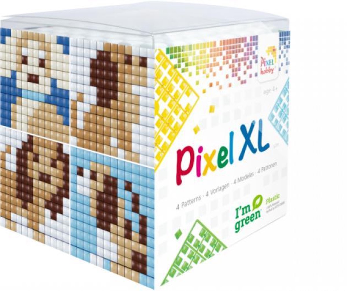 Inhoud per Kubus - 4 patronen - 4 kleine basisplaten - 18 Pixelmatjes