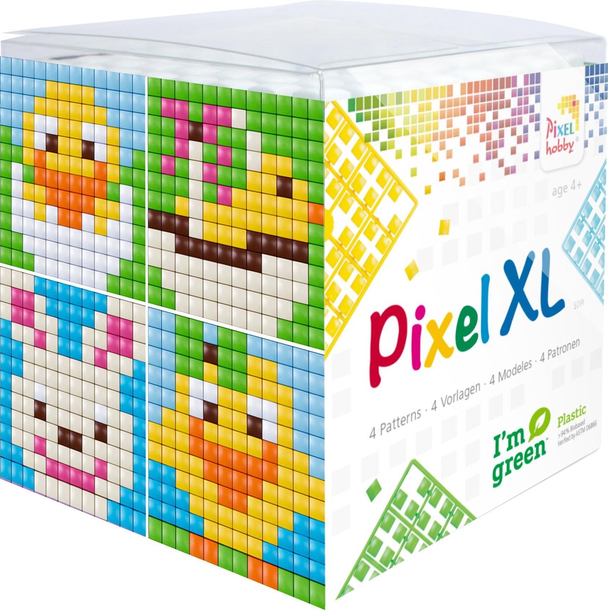 4 flexibele basisplaatjes,12 pixelmatjes en 4 patronen. De XL kubus is verkrijgbaar in 12 verschillende thema's