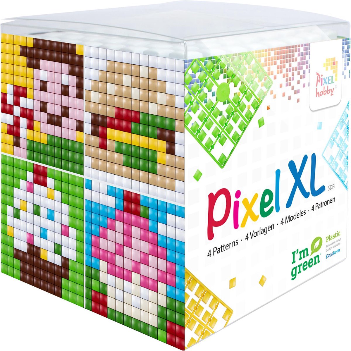 4 flexibele basisplaatjes,12 pixelmatjes en 4 patronen. De XL kubus is verkrijgbaar in 12 verschillende thema's