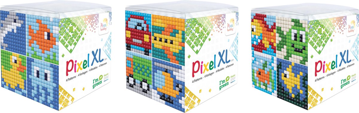 4 flexibele basisplaatjes,12 pixelmatjes en 4 patronen.