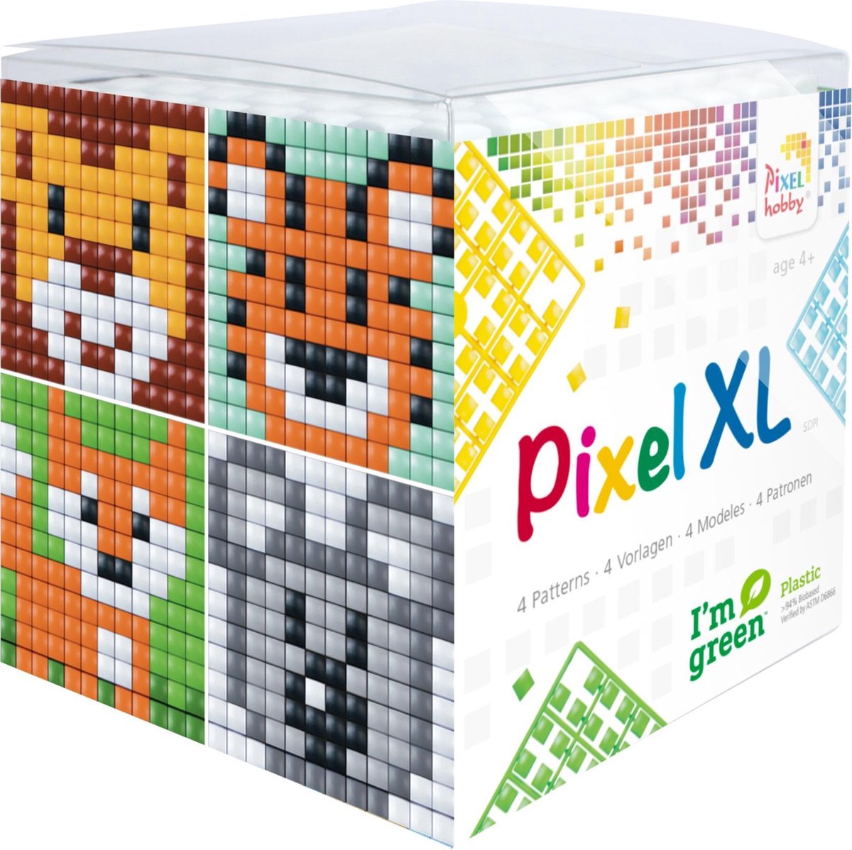 4 flexibele basisplaatjes,12 pixelmatjes en 4 patronen. De XL kubus is verkrijgbaar in 12 verschillende thema's
