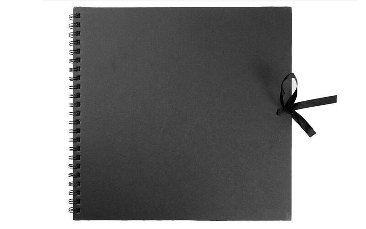 Plakboek – Scrapbook – Fotoboek Zwart. Afmeting 30,5 X 30,5 cm 40 pagina’s (80 zijdes) 180 grams zuurvrij papier Stevige kaft, ringband en lintsluiting. Een plakboek geheel in het zwart, erg mooi om met een wit potlood of stift te bewerken. Kleuren komen goed tot zijn recht op de zwarte bladzijdes.
