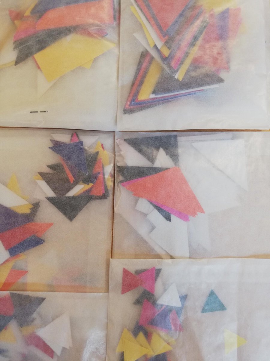 Mooi gekleurd assortiment plakdriehoeken. Deze plakdriehoeken zijn NIET zelfklevend. De maten zijn 17 t/m 50mm verdeeld over 9 zakjes. ( sitspapier )