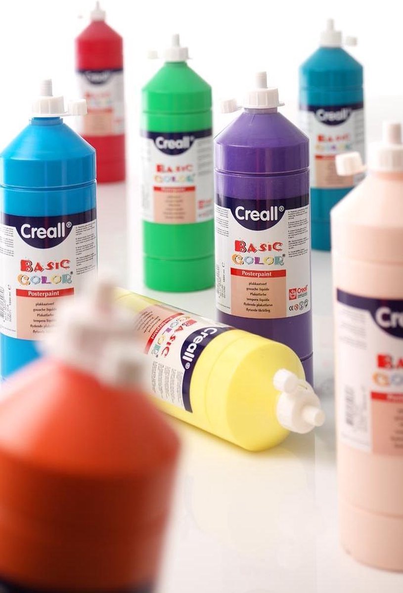 Goede kwaliteit verf op waterbasis. Ook wel schoolverf genoemd. In 6 mooie kleuren primair geel, donkerrood, donkerblauw, donkergroen, zwart en wit. 1 liter flessen. 98% van de ingrediënten is op natuurlijke basis.