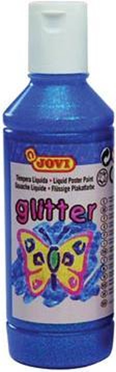 Plakkaatverf met glitters. Goed dekkende verf, gemakkelijk in gebruik. Voor kinderen vanaf 3 jaar. Kan gebruikt worden op alle soorten van poreus materiaal zoals mat papier, Bristol papier, karton, hout, enz.