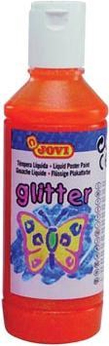 Plakkaatverf met glitters. Goed dekkende verf, gemakkelijk in gebruik. Voor kinderen vanaf 3 jaar. Kan gebruikt worden op alle soorten van poreus materiaal zoals mat papier, Bristol papier, karton, hout, enz.