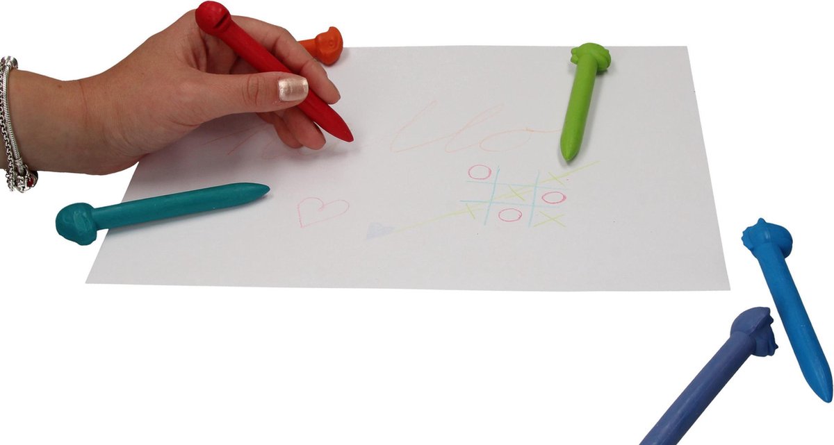 Stimuleer de fijne motoriek van uw kind met de Plastic Krijtjes. De krijtjes hebben een vrolijke vorm van Spannende Dinosaurussen in verschillende Kleurtjes. U kunt met de krijtjes uw kind leren over de verschillende kleurtjes. Voordelen: ? Stimuleert de fijne motoriek van uw kind ? Tekenen reduceert stress en stimuleert het verwerkingsvermogen van uw kind ? Leer uw kind kleuren ontdekken ? Extra zachte krijtjes voor extra mooie tekeningen! ? Niet breekbaar Specificaties: - Materiaal: Plastic - Gewicht: 120 gram - Kleur: Paars, Oranje, Groen, Rood, Blauw, Lichtblauw Inhoud: 1x Plastic Krijtjes Dinosaurussen voor Kinderen Plastic Krijtjes Dinosaurussen voor Kinderen – 11x2x2cm | Teken en Kleuren | Krijttekeningen