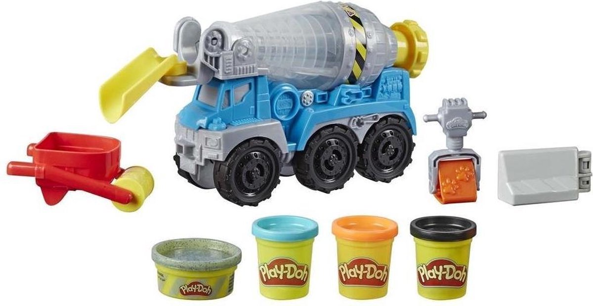 Play-Doh Wheels cementwagen 4 potjes klei Kruiwagen 2 drukvormen Geschikt voor kinderen vanaf3 jaar