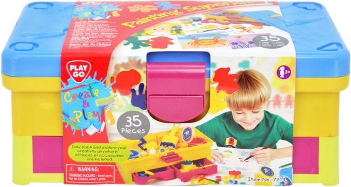 Gemakkelijk in te pakken om overal mee naar toe te nemen, ontdek je creativiteit overal! Laat je kleine schilder zijn talenten opbouwen en vele uren duizelingwekkend creatief plezier beleven. Deze geweldige opbergdoos bevat verf, penselen, sponzen, kleurpotloden en markeerstiften en nog veel meer om hem / haar te helpen met het schilderen.