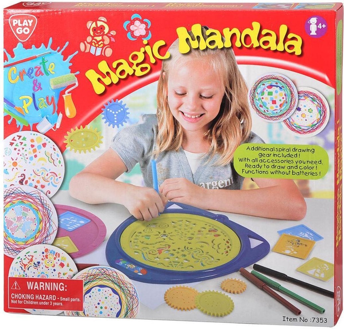 Maak de mooiste mandala's met deze set van Playgo. Leg de sjablonen in de houder, plaats het witte vel en maak met de bijgeleverde stiften de mooiste patronen. De set bevat 8 verschillende sjablonen en 5 extra tandwielen om spiraaltekeningen mee te maken. Inclusief 5 vellen papier en 6 stiften.