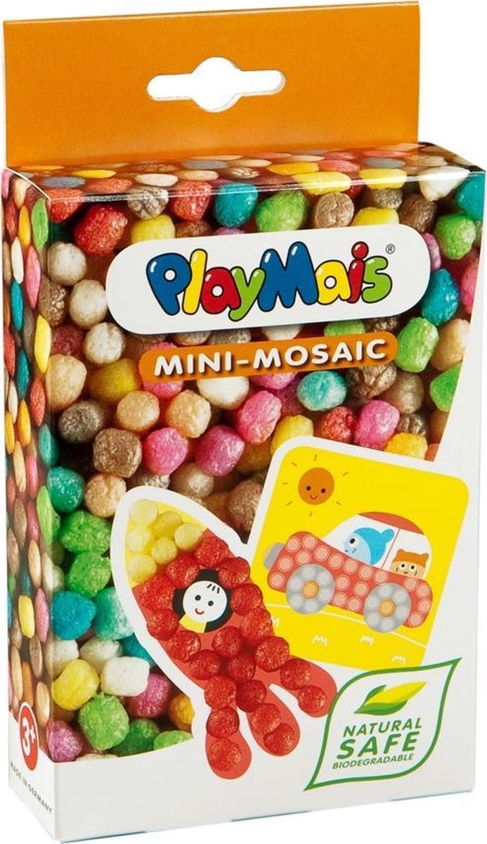 PlayMais mini mozaïek auto en raket Een set waarmee kinderen zelf makkelijk twee mooie mozaïekwerkjes kunnen maken. De PlayMais plakt met een beetje water en als ze de stukjes op de juiste plek hebben geplakt, hebben ze een leuk kunstwerkje. 300 stukjes PlayMais 2 kaarten Accessoires Instructies Geschikt voor kinderen vanaf 5 jaar