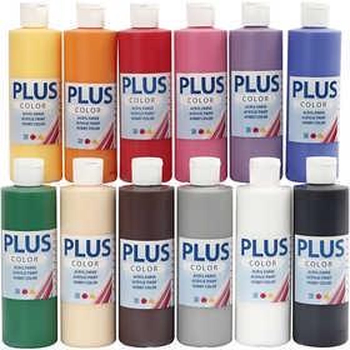 Plus Color acrylverf, kleuren assorti, 12x250ml