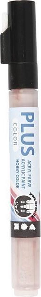 Plus Color Markers in de kleur dusty rose. Hobbyverf (acrylverf) in een stift, ideaal voor het aanbrengen van kleine accenten, teksten en patronen op vele verschillende soorten ondergronden. U kunt deze hobbyverf gebruiken voor het decoreren van houten artikelen zoals houten doosjes en houten letters. Deze stiften zijn ook geschikt voor styropor vormen zoals ballen en sterren, steen, gips, papier, karton en canvas. Kortom: een veelzijdige hobbyverf in een pen! sneldrogend goed dekkend 1-2 mm waterbasis zijdematten uitstraling met 1 extra vervangbare punt
