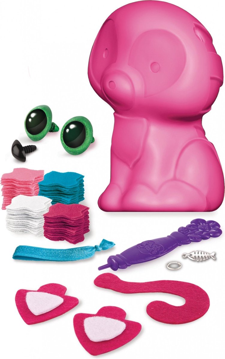 Er komt geen lijm aan te pas en het diertje is gemaakt van schuim, hoeft niet opgevuld te worden, super makkelijk dus! Inhoud: 620x stukken stof 14x accessoires 1 diertje 1 stylus