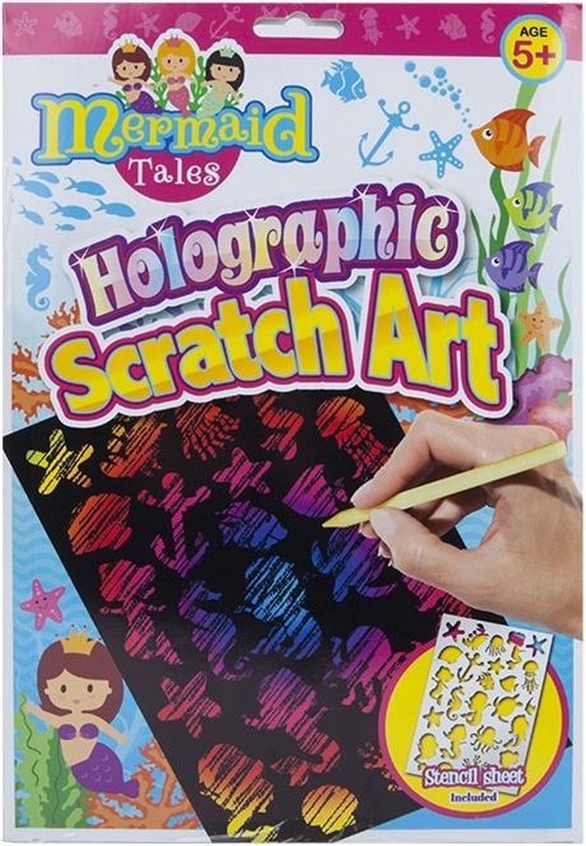 PMS krasset Mermaid Tales In deze set vind je twee zwarte vellen met een mooie, gekleurde metallic-laag eronder. Met de meegeleverde kraspen en het sjablonenvel maak je zo de mooiste tekeningen. Specificaties: Kleur: zwart Geslacht: junior Materiaal: papier Afmetingen krasvellen: 18 x 15 cm (L x B) Leeftijd: vanaf 4 jaar Inhoud: 2 Krasvellen 1 Sjablonenvel 1 Kraspotlood
