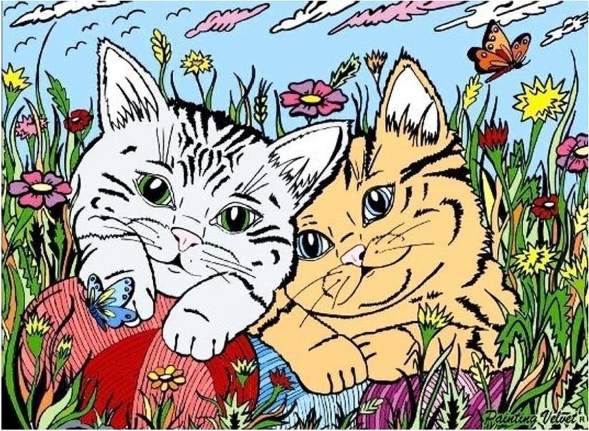 Poesjes in het gras Colorvelvet kleurpakket inclusief 12 stiften. Wat is Colorvelvet? Met Colorvelvet maak je de mooiste kunstwerken maar niet zoals de standaard kleurplaten. De tekeningen zijn gemaakt van een speciaal absorberend karton, gedeeltelijk bedekt met een 1mm dikke zwarte laag fluweel waardoor je een duidelijke scheiding krijgt met hetgeen wat je moet inkleuren. Behalve dat dit stuk fluweel ervoor zorgt dat je de witte vlakken makkelijk kunt inkleuren komt het zwarte fluweel naar voren wat een heel chique geheel geeft op je Colorvelvet kleurplaat. Deze tekeningen zijn eenvoudig, dit maakt Colorvelvet leuk en leerzaam waardoor dit ideaal is voor alle leeftijden vanaf 3 jaar en ouder. Met colorvelvet hebben kinderen plezier en leren ze tegelijkertijd, waardoor ze kleurrijke tekeningen maken waarmee ze ook hun slaapkamer kunnen versieren. Maar ook voor volwassenen is Colorvelvet zeer geschikt om lekker creatief bezig te zijn. De tekeningen kan je op allerlei verschillende