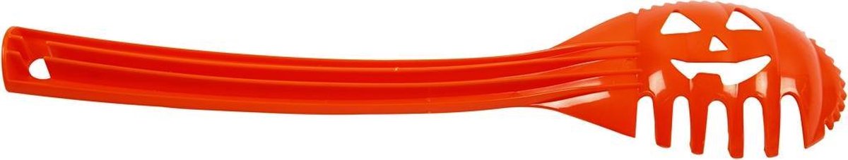 Praktische plastic lepel met zowel lange als korte tanden, in de vorm van een pompoen.Praktische plastic lepel met zowel lange als korte tanden, in de vorm van een pompoen.