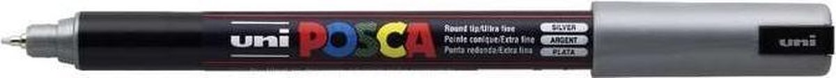 uni-ball Paint Marker op waterbasis Posca PC-1MR Verfstift op waterbasis, voor elke ondergrond. De Posca verf is ondoorschijnend en dekkend, houdt op poreuze oppervlakken en is makkelijk afwisbaar op glas. Extra fijne in metaal gevatte gekalibreerde punt van 0,7 mm breed. Om te schrijven, te tekenen, te schilderen, te versieren en te markeren. De Posca extra fijn PC-1MR is delicaat, gekalibreerd en in metaal gevat. Hij bezit alle kwaliteiten van een viltstift met verf, in de vorm van een pen. Ontworpen voor al degenen die aan een ultrafijn en ingevwikkeldontwerp werken, in een waaier rijk aan kleureffecten. Kleur: zilver