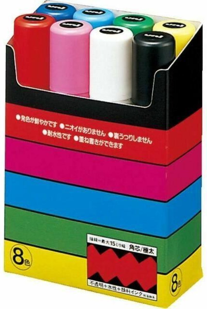 Posca set van PC-17K markers, geschikt voor de meeste toepassingen. Permanent op hout, textiel, karton, metaal, keramiek en plastic. Uitwisbaar op gladde oppervlakken zoals glas. Op metaal, plastic en geglazuurd aardewerk moet de creatie gefixeerd worden met een fixatielak. Kenmerken – Dikte: 15 mm – Op waterbasis – Bevat geen alcohol of oplosmiddelen – Dekkend, ondoorzichtig en mat Deze set bevat 8 markers: Zwart, Wit, Rood, Geel, Groen, Blauw, Lichtblauw & Roze