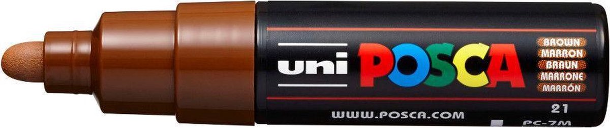 Posca PC-7M - Kleur Bruin - 4.5–5.5 mm Breed Rond - Geschikt op vele materialen zoals kunststof, hout, karton, papier, glas, textiel…