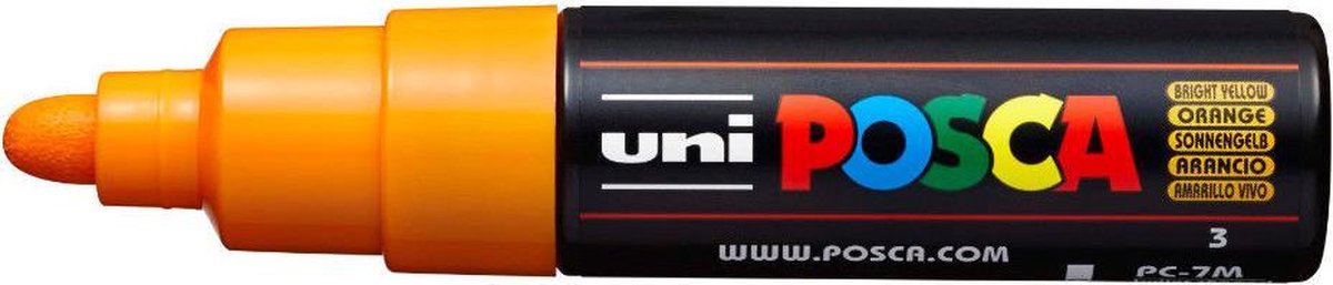 Posca PC-7M - Kleur Oranje - 4.5–5.5 mm Breed Rond - Geschikt op vele materialen zoals kunststof, hout, karton, papier, glas, textiel…