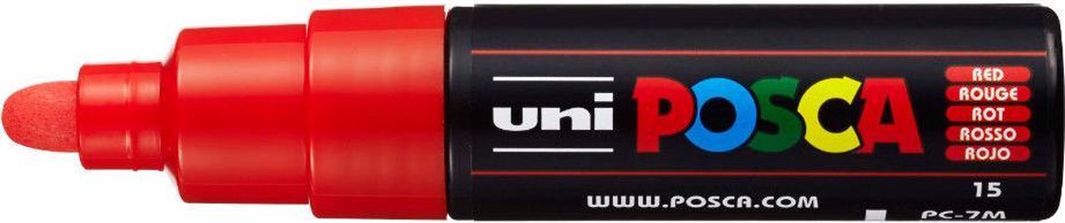 Posca PC-7M - Kleur Rood - 4.5–5.5 mm Breed Rond - Geschikt op vele materialen zoals kunststof, hout, karton, papier, glas, textiel…