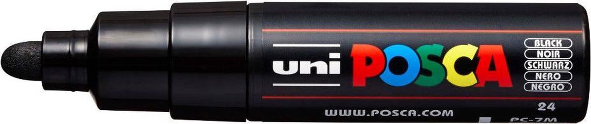 Posca PC-7M - Kleur Zwart - 4.5–5.5 mm Breed Rond - Geschikt op vele materialen zoals kunststof, hout, karton, papier, glas, textiel…
