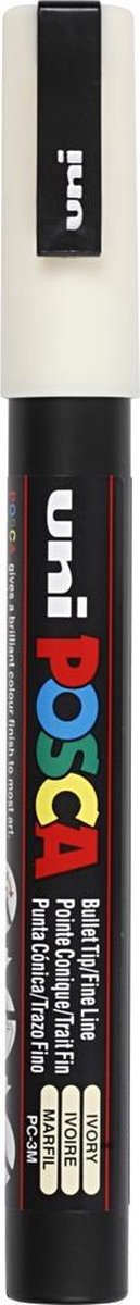 POSCA PC-3M verfmarker Met een conische punt beschikt de PC-3M over alle kwaliteiten van een verfmarker! Hij is ontworpen voor liefhebbers en professionals die op zoek zijn naar een diepe en heldere lijn. De verfmarker is een dekkende, permanente stift op waterbasis voor zowel gladde als poreuze oppervlakken - bijvoorbeeld glas, metaal, textiel, plastic. Specificaties: Kleur: ivoorwit Materiaal: kunststof Geslacht: unisex Lijndikte: 0,9 - 1,3 mm leeftijd: vanaf 6 jaar
