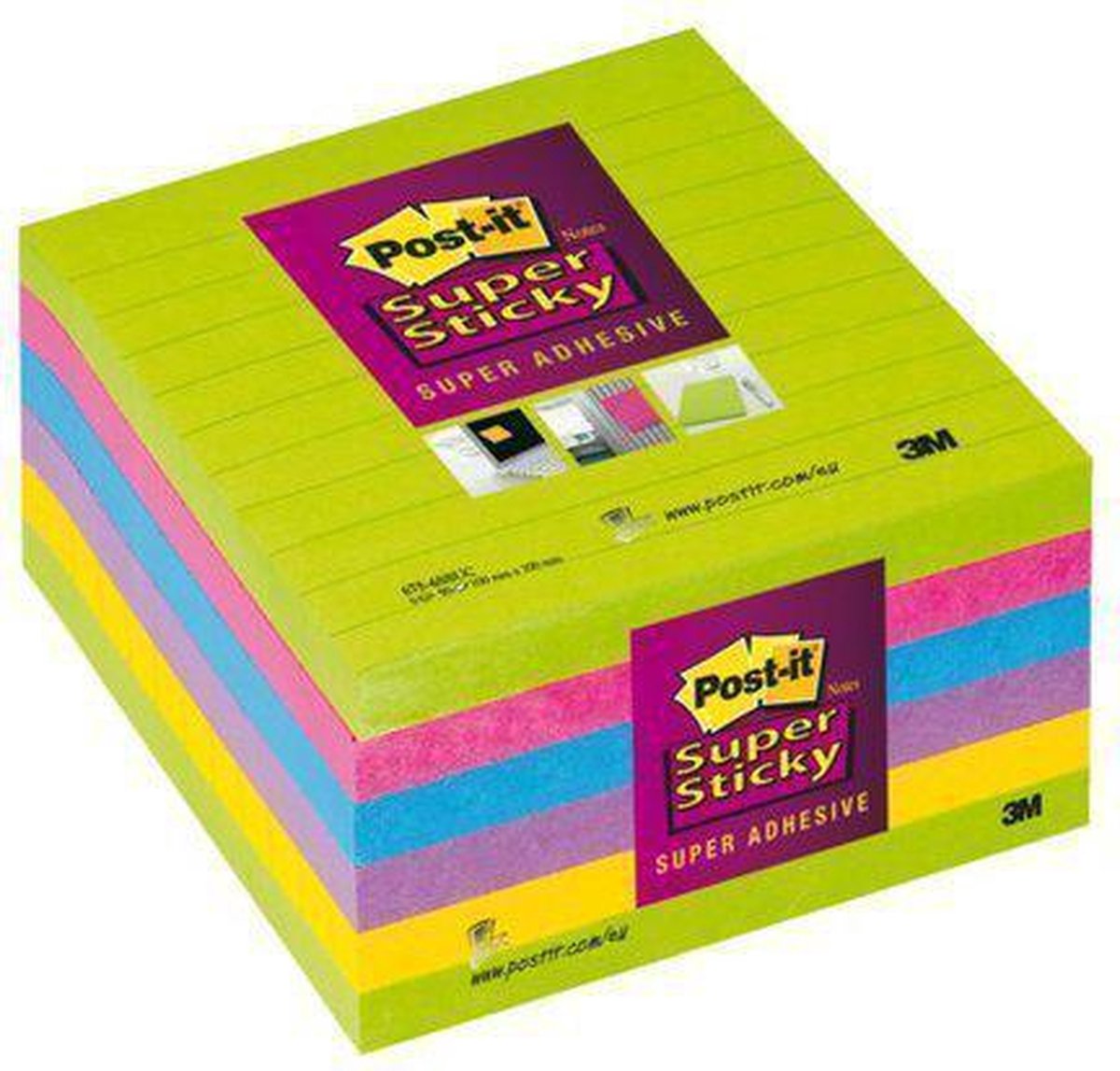 3M Post-It 675SSUC2. * 3M Post-It Post-it 675 Super Sticky Rainbow 100x100mm. * Post-it Super Sticky Notes hebben een extra sterke kleeflaag en zijn daarom vrijwel overal toe te passen: op de koelkast, op tassen, muren, lampen of op het dashboard van de auto. * Herpositioneerbaar en verwijderbaar. * Memoblok in diverse opvallende neonkleuren. * Blok à 90vel. * PEFC gecertificeerd. Samenvatting van de product karakteristieken. Product: Post-it 675 Super Sticky Rainbow 100x100mm Eenheid: Pak à 6 Stuk à 90 Vel Formaat: 100x100mm Productcategorie Bureau- en kantoorartikelen Productgroep: Memoblokken zelfklevend Producttype: Memoblok Product-ean: 0051135813331