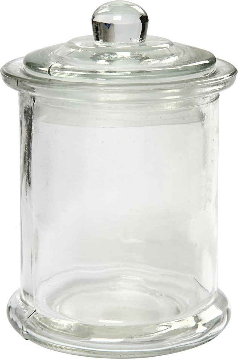 Cylindervormige pot van transparant glas.Cylindervormige pot van transparant glas.