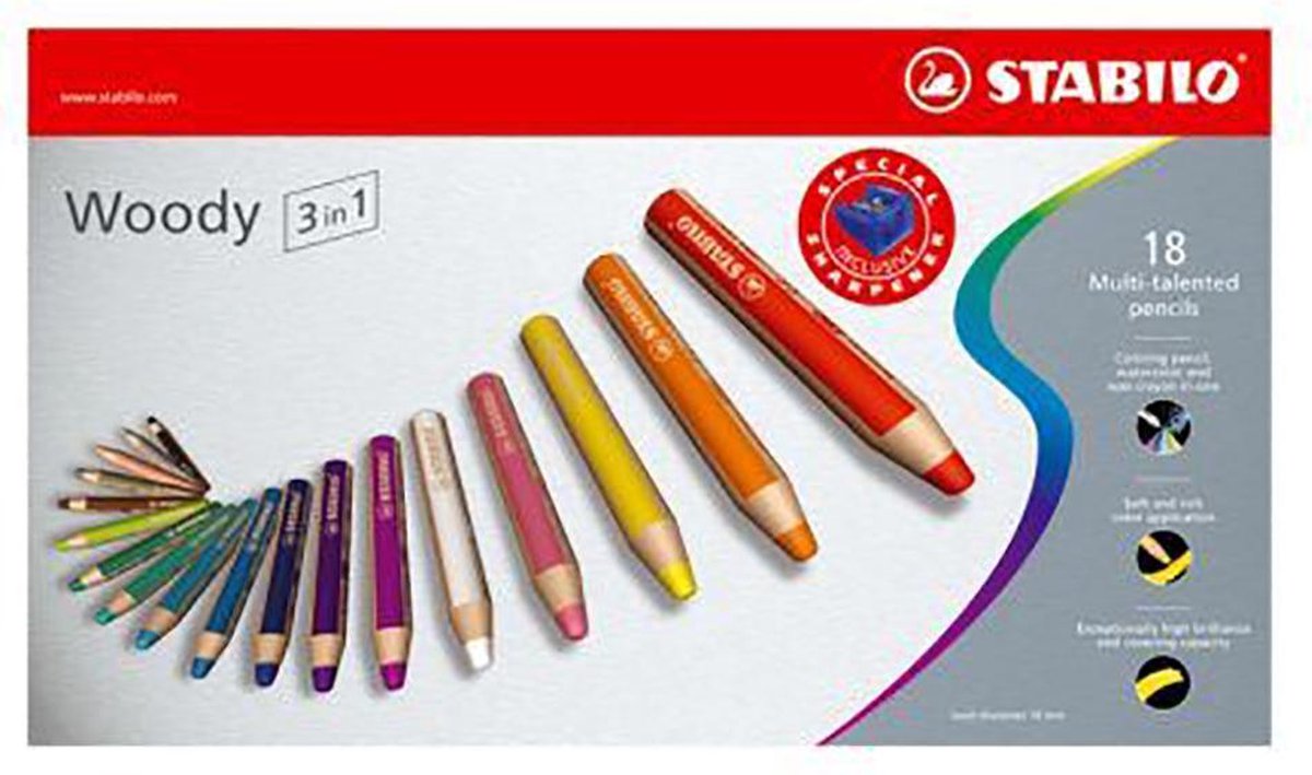 FSC gecertificeerd kleurpotlood, aquarelpotlood en waskrijt in één. Het FSC certificaat garandeert dat het hout uit sociaal, ecologisch en economisch verantwoord beheerde bossen afkomstig is. Je kan met het veelzijdige potlood kleuren, tekenen, verven én schminken! Doelgroep kinderen vanaf 3 jaar amateur tekenaars Productinformatie 3 in 1: een kleurpotlood, aquarelpotlood en waskrijt verkrijgbaar in 18 prachtige kleuren wateroplosbaar; makkelijk afwasbaar van oppervlakten kleurt op karton, donkere ondergronden, glas, leer, metaal en papier breekbestendig dikte ideaal voor kinderen voor grip op potlood extra dikke kern geeft net zoveel kleur als 8 standaard kleurpotloden 10 mm diameter milieuvriendelijk inclusief puntenslijper Product info Milieu 100% FSC gecertificeerd hout PEFC garandeert dat de houten producten uit verantwoorde beheerden bossen komen