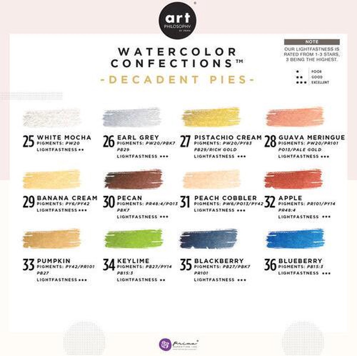 Watercolor Confections van Prima marketing is prachtige verf van hoge kwaliteit en veel pigment In dit doosjes zitten 12 prachtige kleuren. De napjes zitten in een handig doosje met uitklapbaar palet. Handig voor op reis of voor in je etui. Zeer geschikt voor mixed media projecten, biblejournaling en aquarelleren.