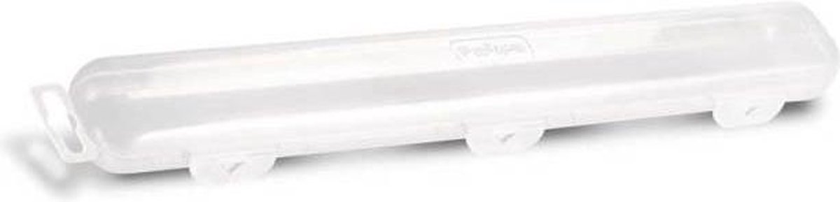Primo penselendoos Deze penselendoos is handig om jouw penselen of potloden in op te bergen na het knutselen! Er passen ongeveer twaalf penselen in het doosje. Specificaties: Kleur: transparant Geslacht: junior Materiaal: kunststof Afmetingen: 33 x 5 x 3,5 cm (LxBxH)