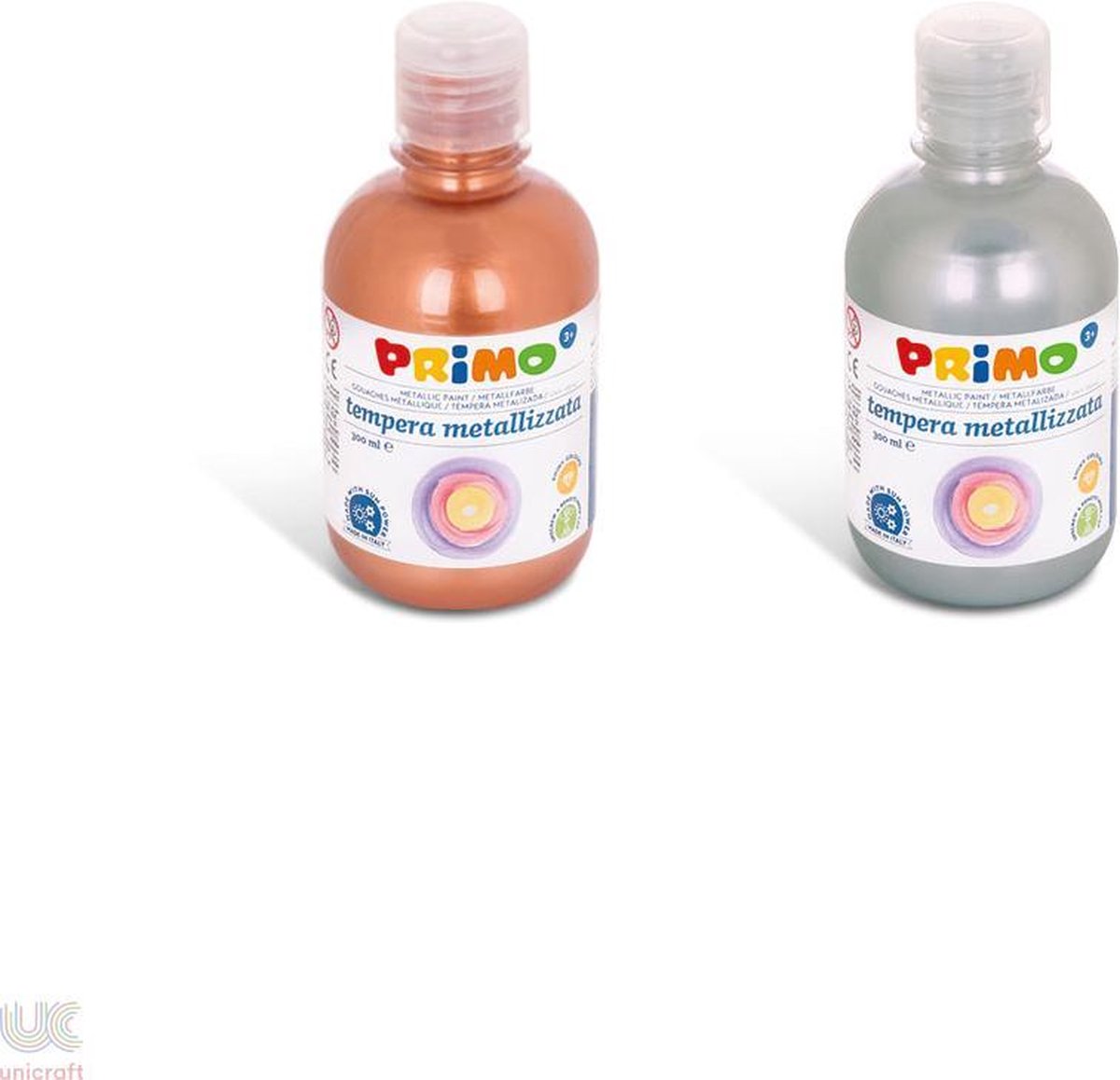 Primo Plakkaatverf metallic, pakket met 2 flessen van 300 ml. Set bevat de kleuren: zilver en koper. Ideale kleuren om de mooiste kleurencombinaties te maken!
